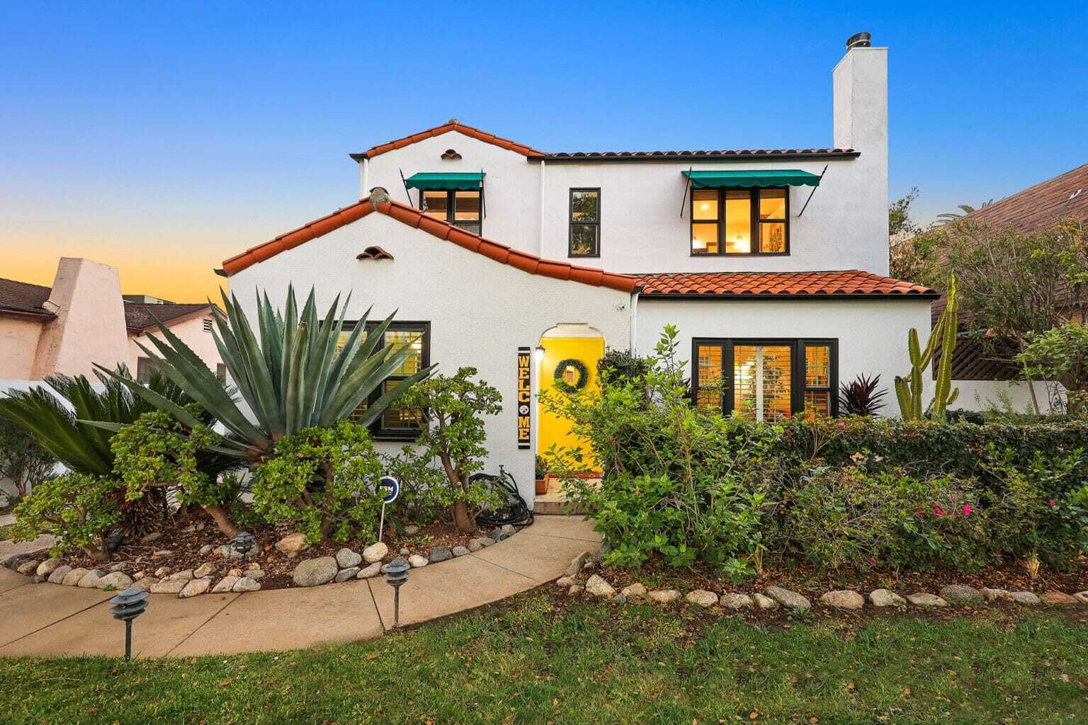 Located in the desirable Brigden Ranch neighborhood is this impressive 1927 two-story Spanish Mediterranean that has been well maintained, renovated, and redesigned with exquisite attention to detail at every turn. This three bedroom, two bath home with pool and spa offers everything you need and want in a home today. The beautifully landscaped front yard and private porch sets the mood as you approach the home. The bright and cheerful yellow front door welcomes you into this lovely home’s formal living room which is accented with a beautiful fireplace, built-in shelves, plantation shutters and coved ceilings. The kitchen was fully remodeled in 2015 with custom cabinetry, quartz countertops, farm-sink, and stainless-steel appliances. The upstairs level spacious primary bedroom provides an escape with multiple sitting areas including a private generous balcony to enjoy SoCal sunsets daily. The private backyard is your very own oasis, starting with the oversized heated pool with spa and surrounded by drought tolerant landscape.